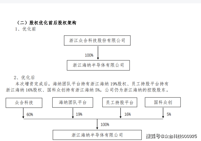 眾合科技對浙江海納股權進行優化改革,團隊入股,并且完成工商更手續。