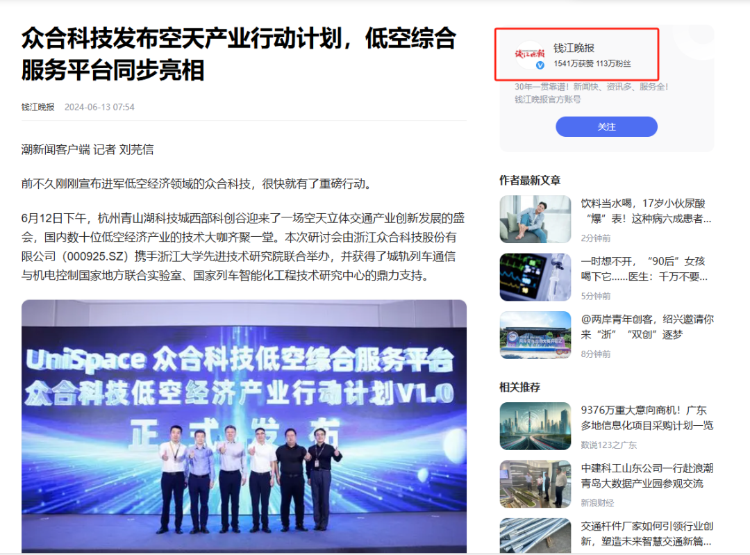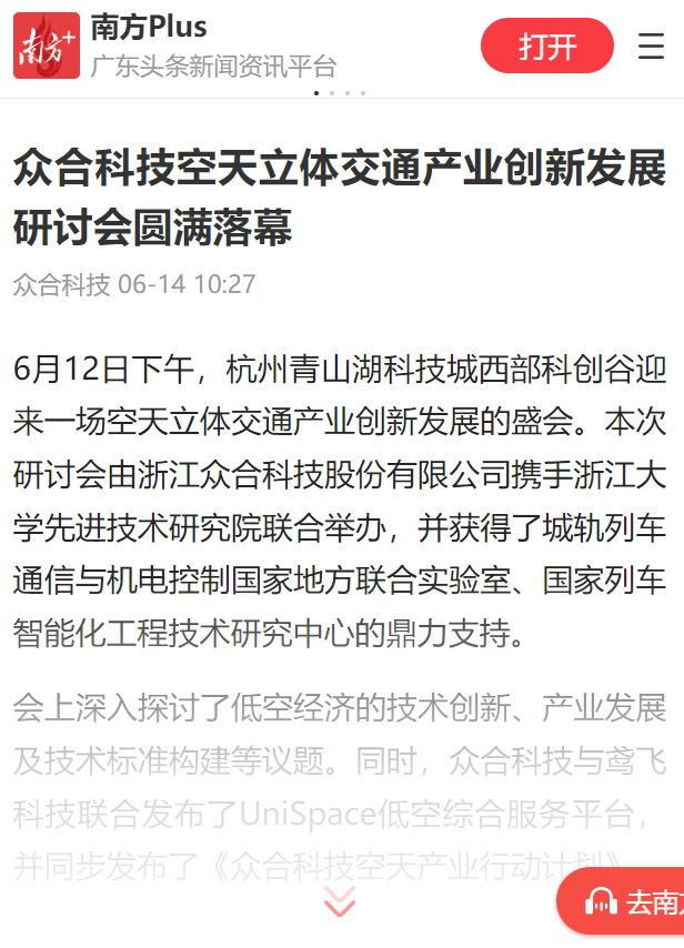 【媒體聚焦】實力刷屏!多家主流媒體關(guān)注眾合科技空天立體交通產(chǎn)業(yè)創(chuàng)新發(fā)展研討會