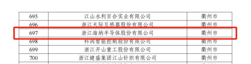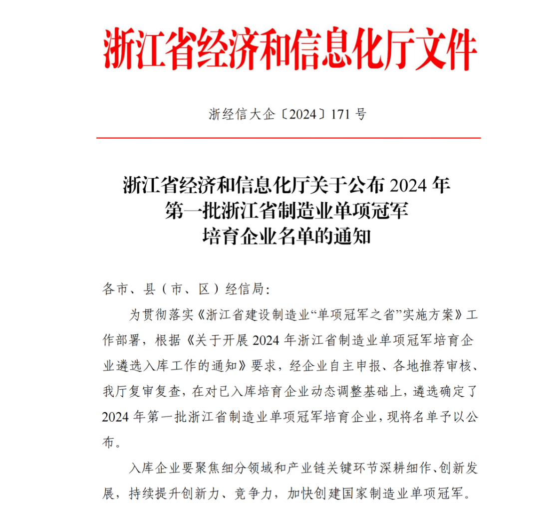 8月23日,浙江省經濟和信息化廳公布了2024年第一批浙江省制造業單項冠軍培育企業名單,根據《關于開展2024年浙江省制造業單項冠軍培育企業遴選入庫工作的通知》要求,經企業自主申報、各地推薦審核、省廳復審復查,眾合科技控股子公司浙江海納半導體股份有限公司成功上榜。