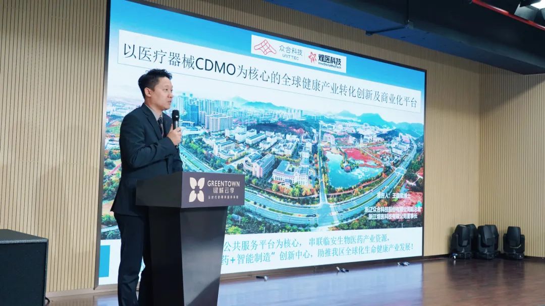 活動(dòng)現(xiàn)場(chǎng),眾合科技副總裁、浙江煋醫(yī)科技有限公司董事長(zhǎng)王國(guó)梁博士分享了他在醫(yī)療器械創(chuàng)新轉(zhuǎn)化、項(xiàng)目孵化、海內(nèi)外項(xiàng)目引進(jìn)等方面的經(jīng)驗(yàn)和見解。煋醫(yī)科技是一家專注于醫(yī)療器械CDMO服務(wù)的創(chuàng)新型企業(yè),致力于打造一個(gè)全域健康產(chǎn)業(yè)轉(zhuǎn)化創(chuàng)新及商業(yè)化平臺(tái),公司已正式啟用其醫(yī)療器械CDMO工廠,立志通過技術(shù)轉(zhuǎn)化和數(shù)字賦能,實(shí)現(xiàn)賦能創(chuàng)新、科技平權(quán),推動(dòng)大健康產(chǎn)業(yè)的轉(zhuǎn)型升級(jí)。