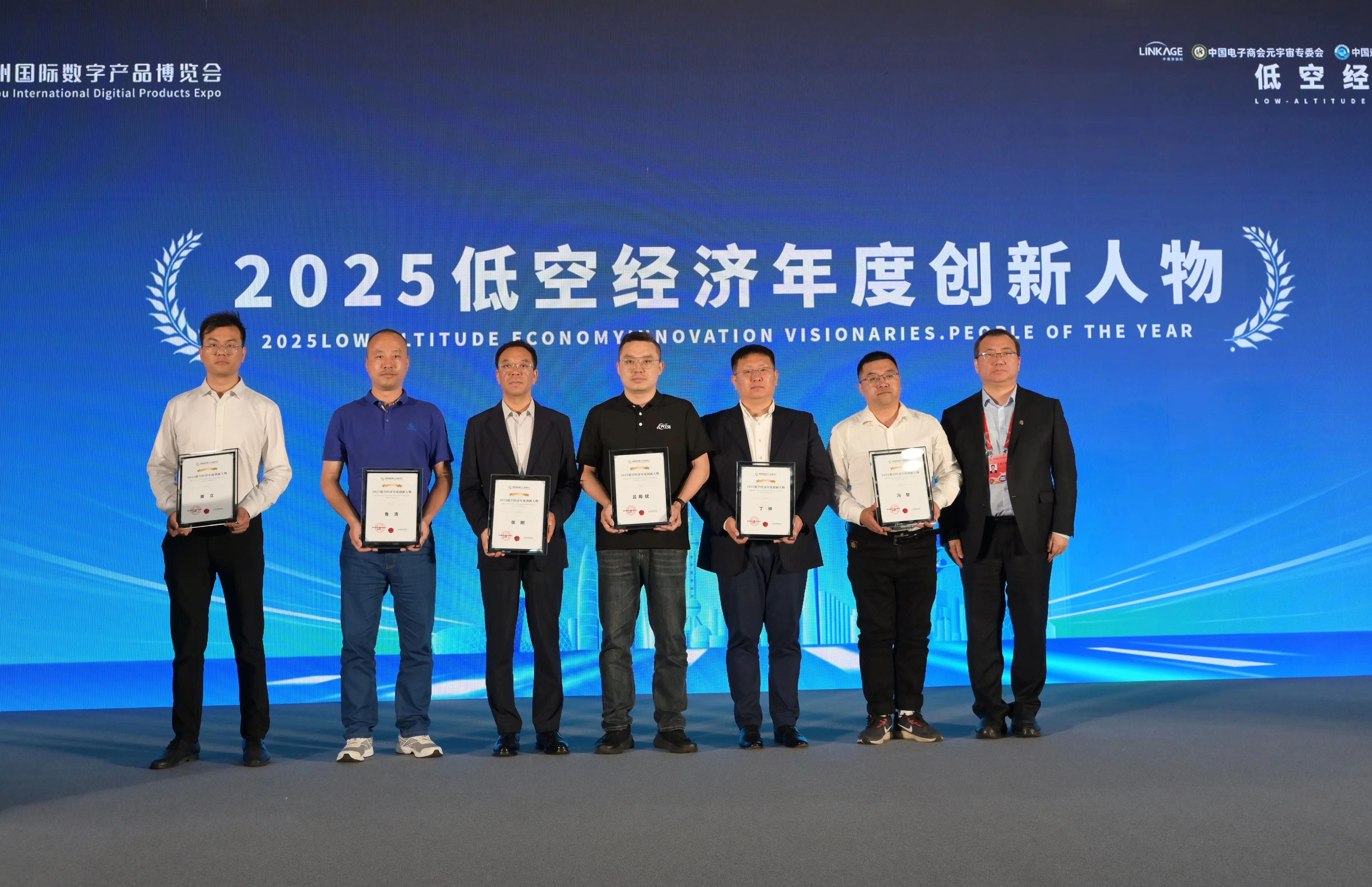 ▲ 鳶飛科技董事長張剛榮獲2025低空經(jīng)濟年度創(chuàng)新人物,左三