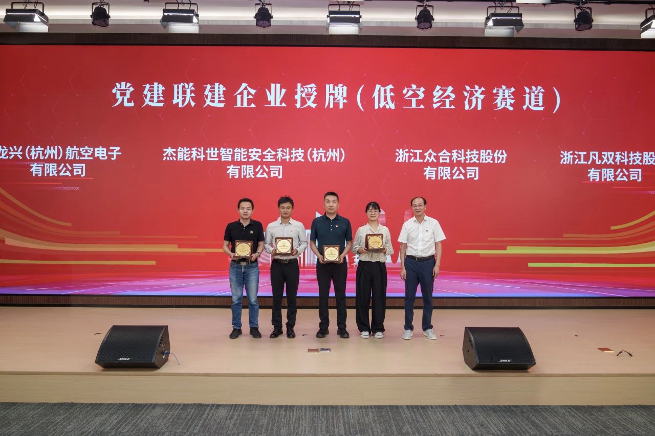 杭州市經信局(市數字經濟局)黨組書記、局長王越劍為本次活動致辭。杭實集團黨委副書記、董事、副總經理任海鋒對黨建聯建基本情況進行介紹。杭實集團黨委書記、董事長鈕健圍繞堅持黨建引領、構建產業生態、深化創新合作三方面展開詳細闡述。授牌儀式環節,眾合科技被正式授予杭實集團低空經濟賽道“專精特新”黨建聯建成員單位,公司黨委副書記、副總裁楊延杰代表公司上臺接受授牌。