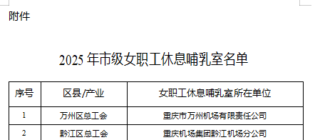 近日,重慶市總工會發(fā)布《關(guān)于確定2025年市級女職工休息哺乳室名單的通知》,重慶眾合智行交通科技有限公司工會的女職工休息哺乳室(原愛心媽咪小屋)被評為“2025年市級女職工休息哺乳室”。